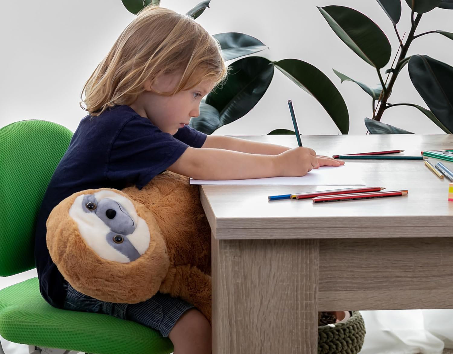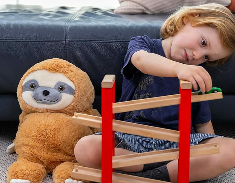 Miękki leniwiec o wymiarach 53 x 32 cm może towarzyszyć dziecku w wielu sytuacjach: w czasie nauki, relaksu, w podróży czy podczas drzemki. Wystarczy położyć go na kolanach, ramionach czy tułowiu - i cieszyć się kojącym efektem delikatnego nacisku obciążonego pluszaka.