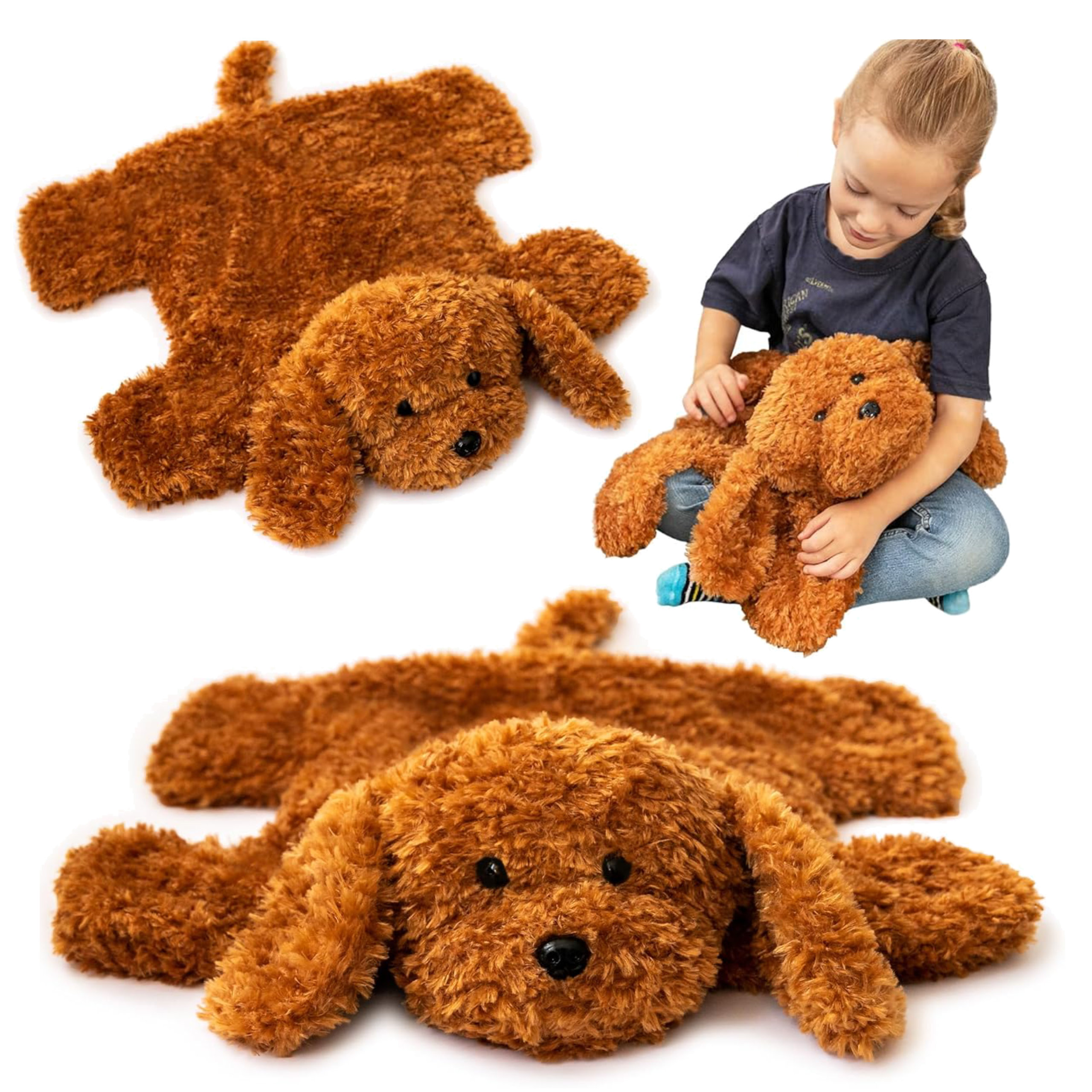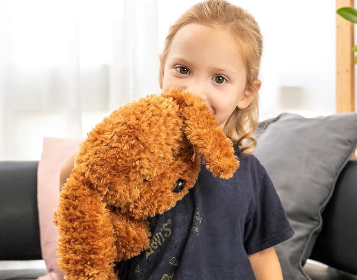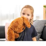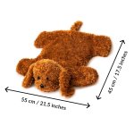 Miękki piesek o wymiarach 55 x 45 cm może towarzyszyć dziecku w wielu sytuacjach: w czasie nauki, relaksu, w podróży czy podczas drzemki. Wystarczy położyć go na kolanach, ramionach czy tułowiu - i cieszyć się kojącym efektem delikatnego nacisku obciążonego pluszaka.