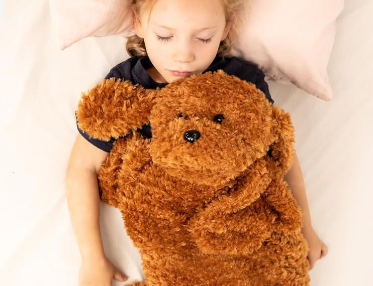 Po rozłożeniu przytulanka może pełnić rolę kocyka obciążeniowego.