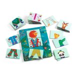 Układanka Mix & Match Modanimo to prawdziwa rewia mody wśród zwierząt. Specjalna plansza posiada trzy wgłębienia, w których należy umieścić trzy karty odpowiadające częściom ciała: głowa wybranego zwierzątka, tułów i nogi. Niezliczona ilość kombinacji pozwala stworzyć unikatowe stylizacje dla tych uroczych stworzeń.