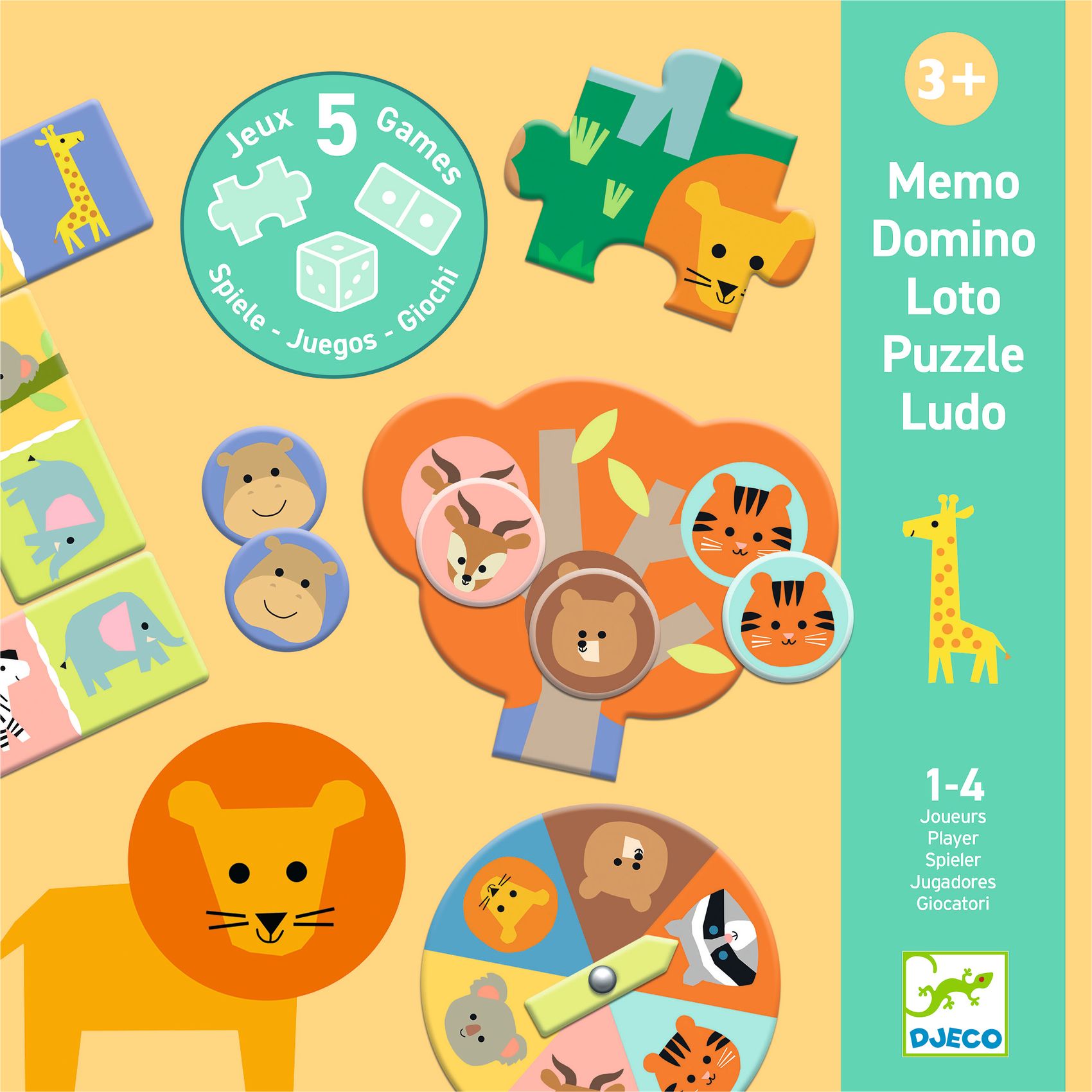 Klasyczne propozycje w odsłonie od Djeco: memory, lotto, domino, puzzle (12 elementów) i mini chińczyk. Elementy gier są ilustrowane zabawnymi zwierzątkami, które zachęcą każdego maluszka do zabawy. Pakowane w praktyczne pudełko, które można zabrać ze sobą wszędzie.