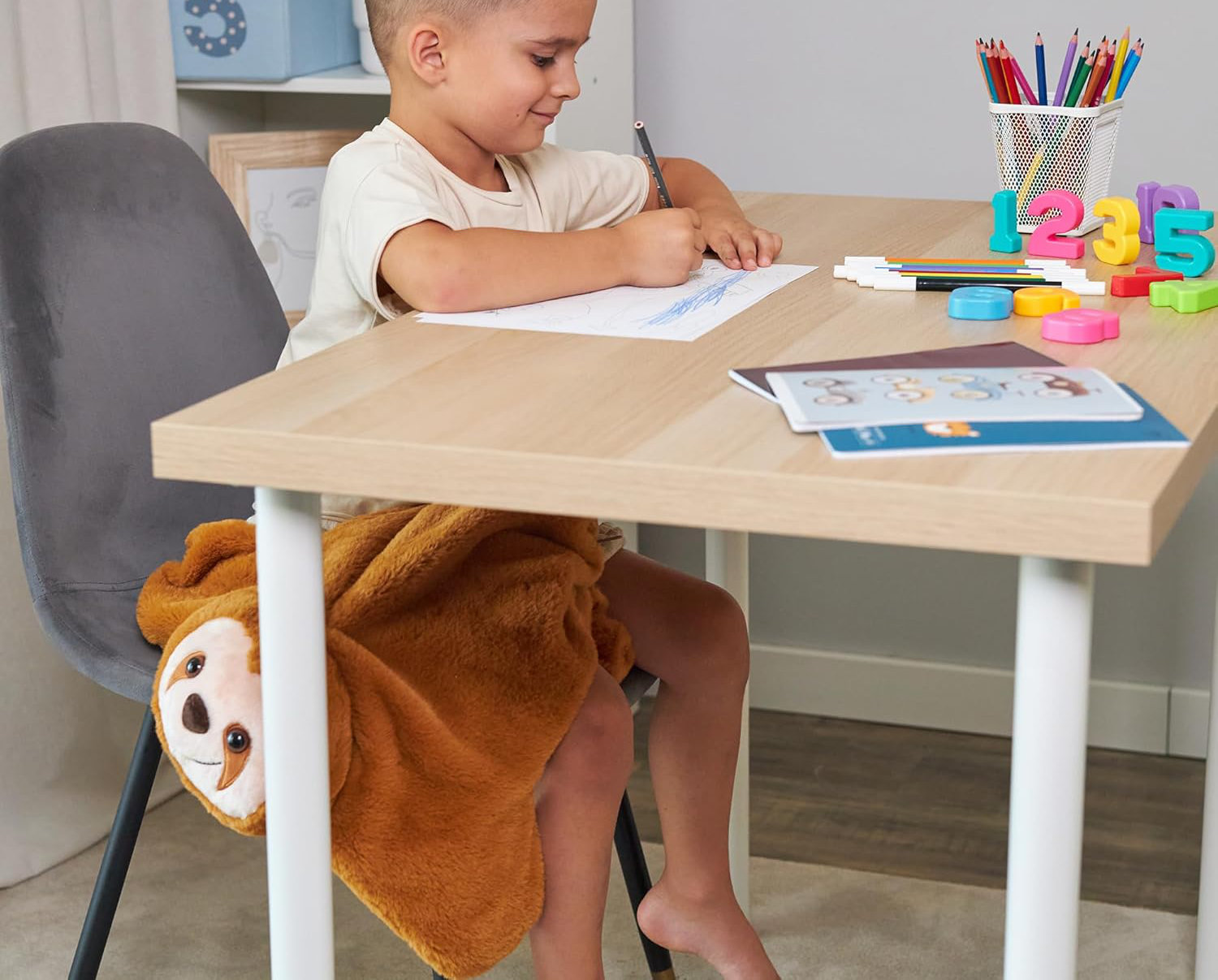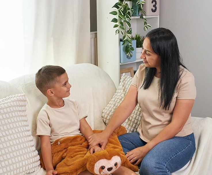 Pluszak obciążeniowy - przyjaciel, który pomaga się wyciszyć. Ten uroczy pluszowy leniwiec to coś więcej niż zwykła przytulanka. Dzięki delikatnemu obciążeniu działa kojąco na układ nerwowy dziecka, pomagając mu się uspokoić, skupić i poczuć bezpiecznie - w domu, w szkole, podczas zabawy i zasypiania.