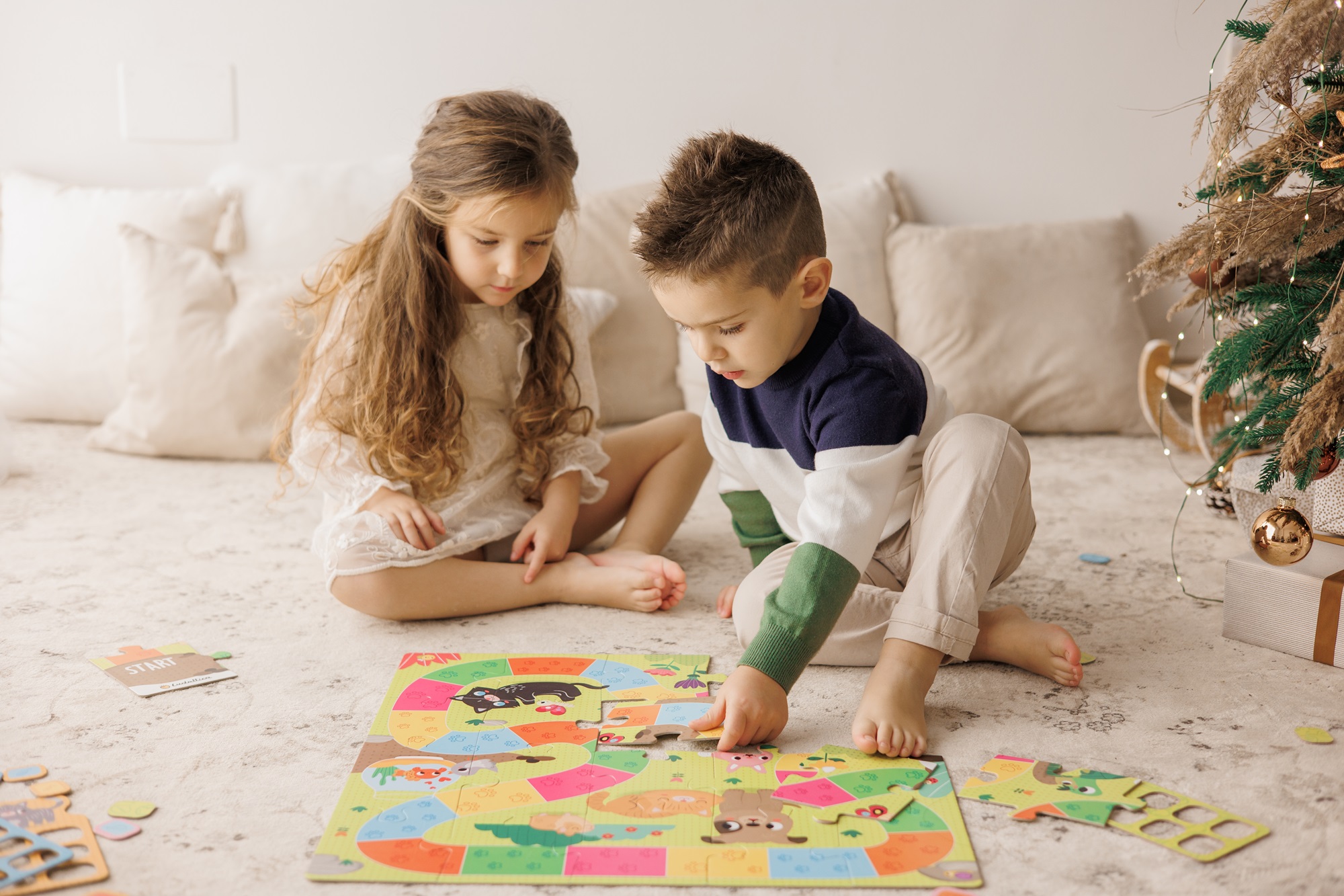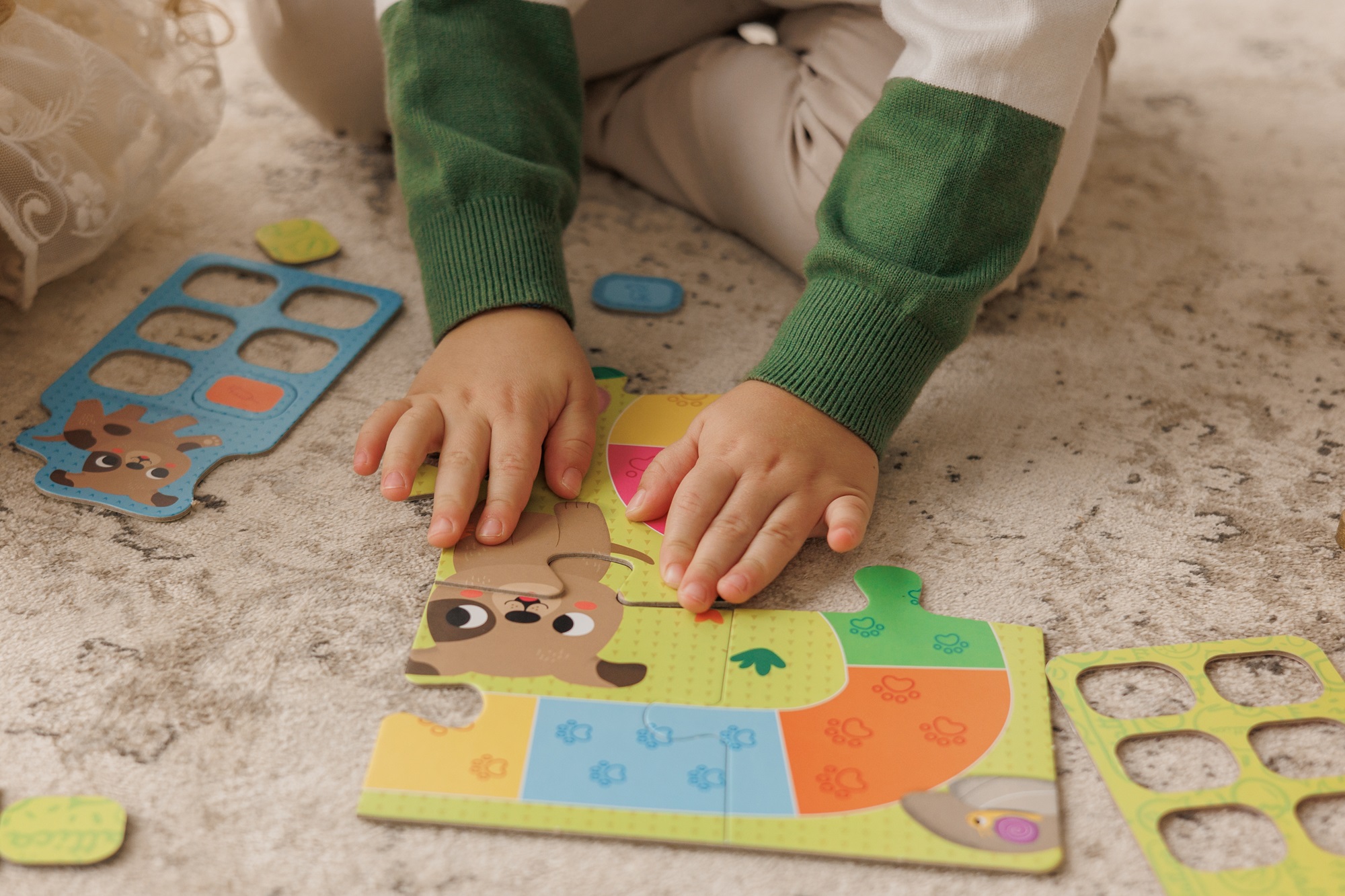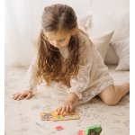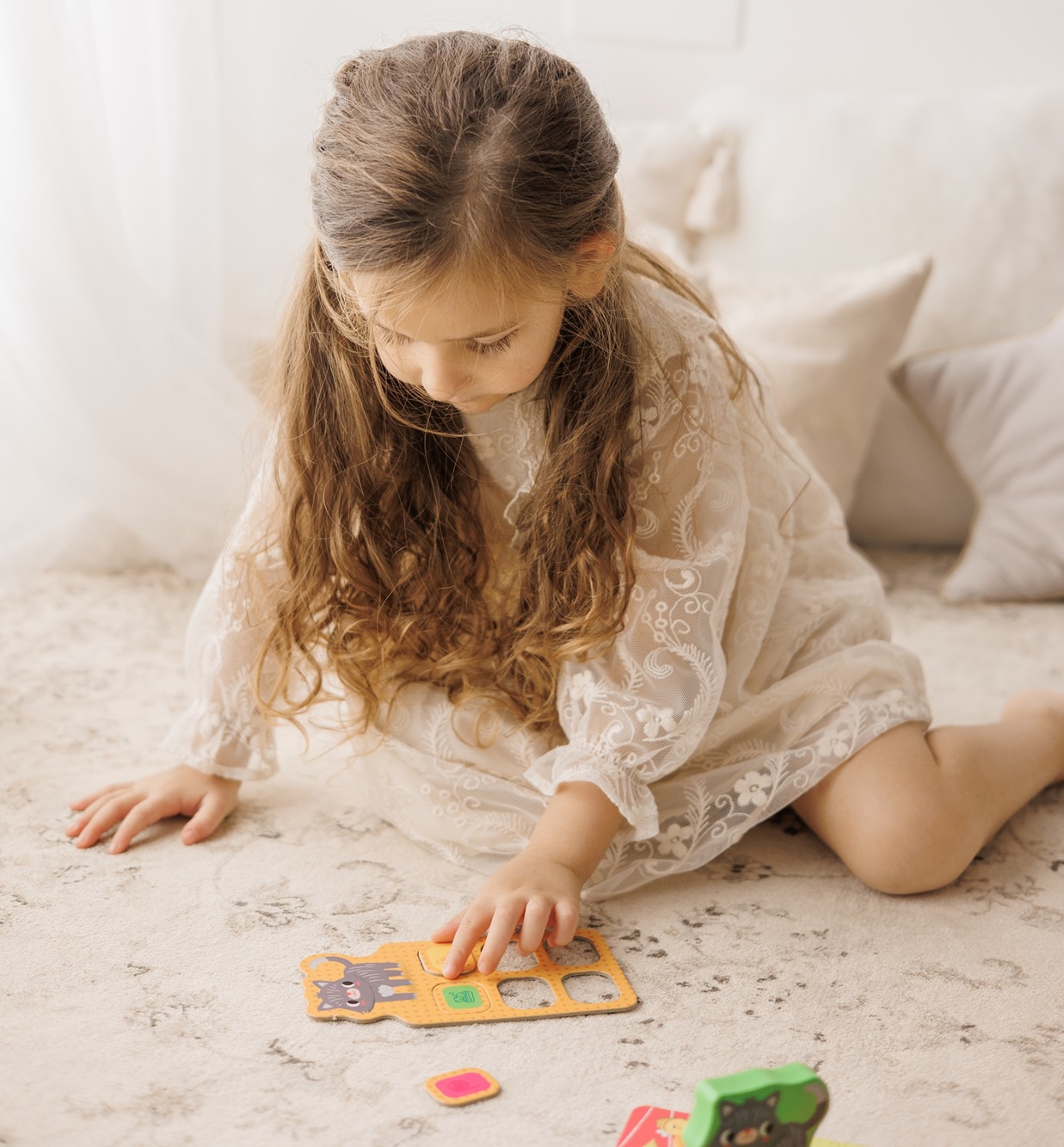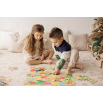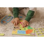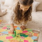 Przygoda rozpoczyna się od ułożenia dużych puzzli, które utworzą obrazek z sympatyczną scenerią wypełnioną zwierzątkami. Idealne do pierwszych prób dopasowywania elementów. Dziecko może bawić się, samo lub w towarzystwie, w układanie puzzli, a następnie w rozpoznawanie zwierząt. Dzięki dołączonym do zestawu drewnianym zwierzątkom można rozpocząć swobodną zabawę w ustawianie, która stymuluje logiczne myślenie i rozwija umiejętności wzrokowo-przestrzenne dziecka.