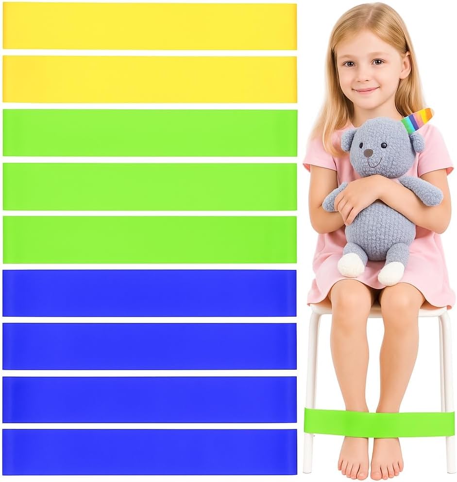 Wykonane z odpornego na rozdarcia materiału TPE, taśmy oporowe zapewniają wysoką elastyczność i wytrzymują nawet intensywne rozciąganie. Przyjazna dla skóry, bezzapachowa taśma gimnastyczna jest wolna od szkodliwych substancji i ma antypoślizgową powierzchnię. Dzięki długości 30 cm i szerokości 5 cm taśmy dopasowują się elastycznie do nóg krzeseł, sprzętu fitness lub partii ciała bez ześlizgiwania się. Idealne do długotrwałego użytkowania jako opaska sportowa lub pomoc przy krzesłach dla dzieci z ADHD w szkole lub w domu, by wspierać koncentrację. Wystarczy owinąć wokół nóg krzesła, aby delikatnie uspokoić ruchome stopy dziecka.
