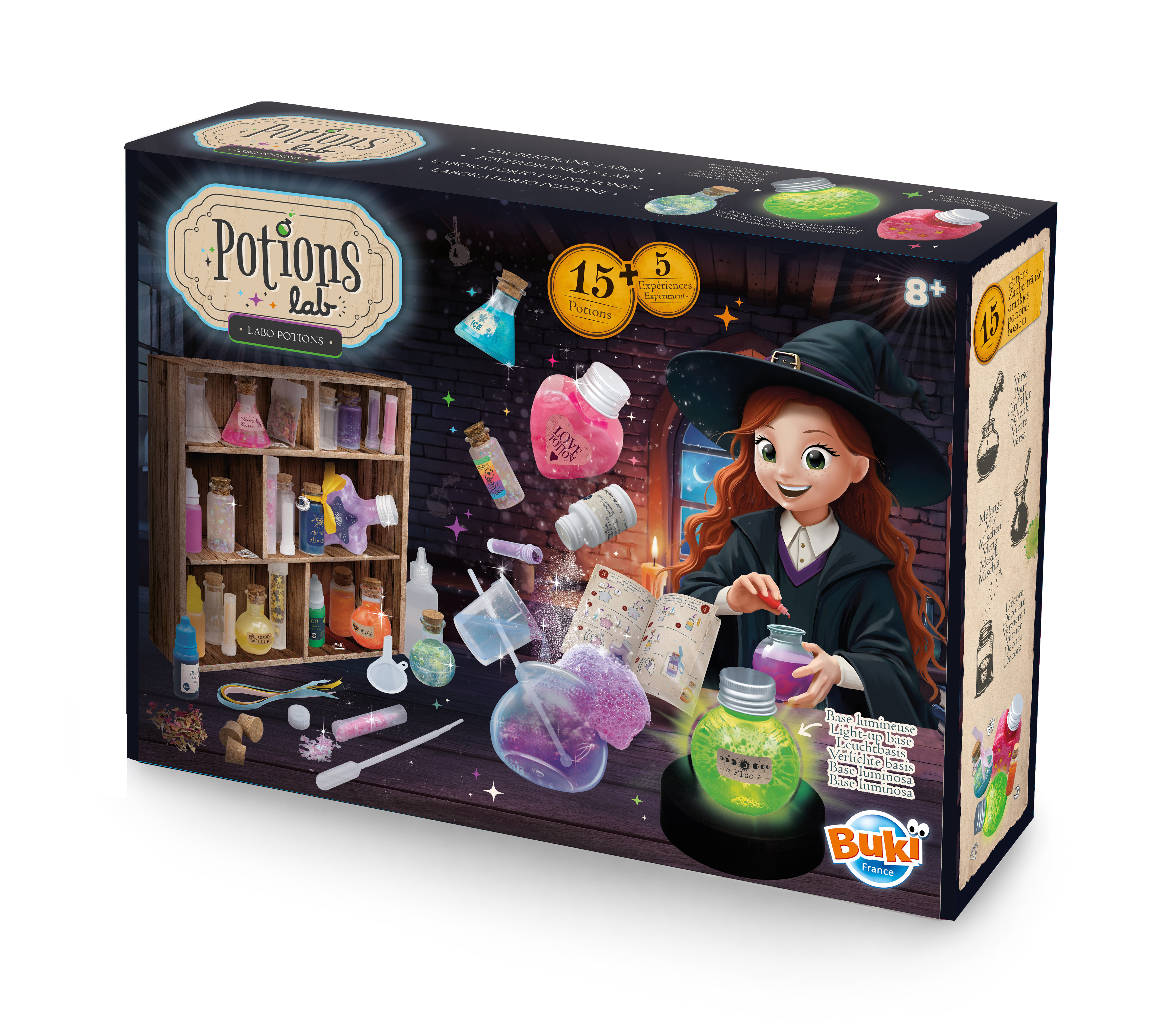 Eliksiry można umieścić na specjalnej podstawce, która podświetli substancję i będzie służyć jako kolorowa lampka nocna.