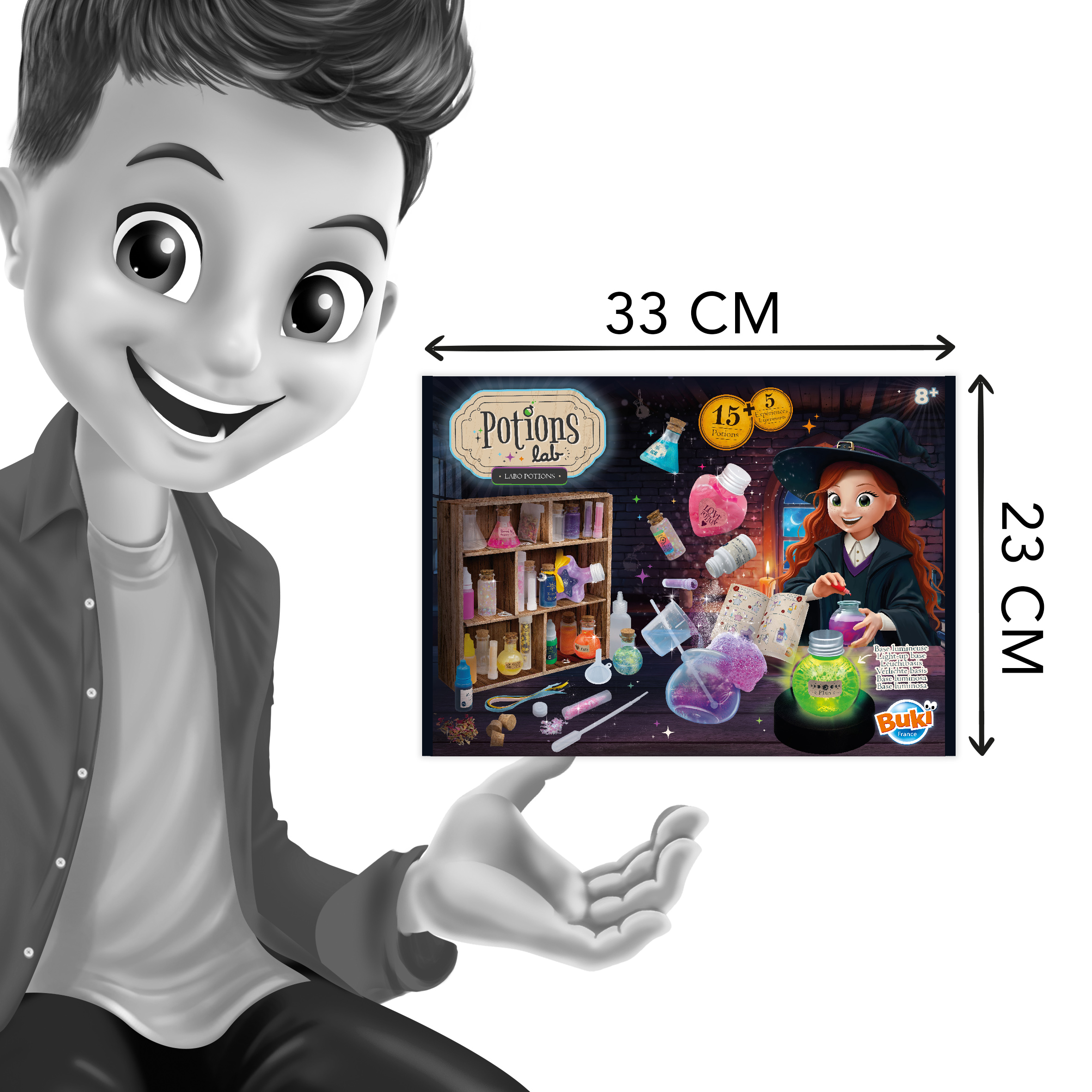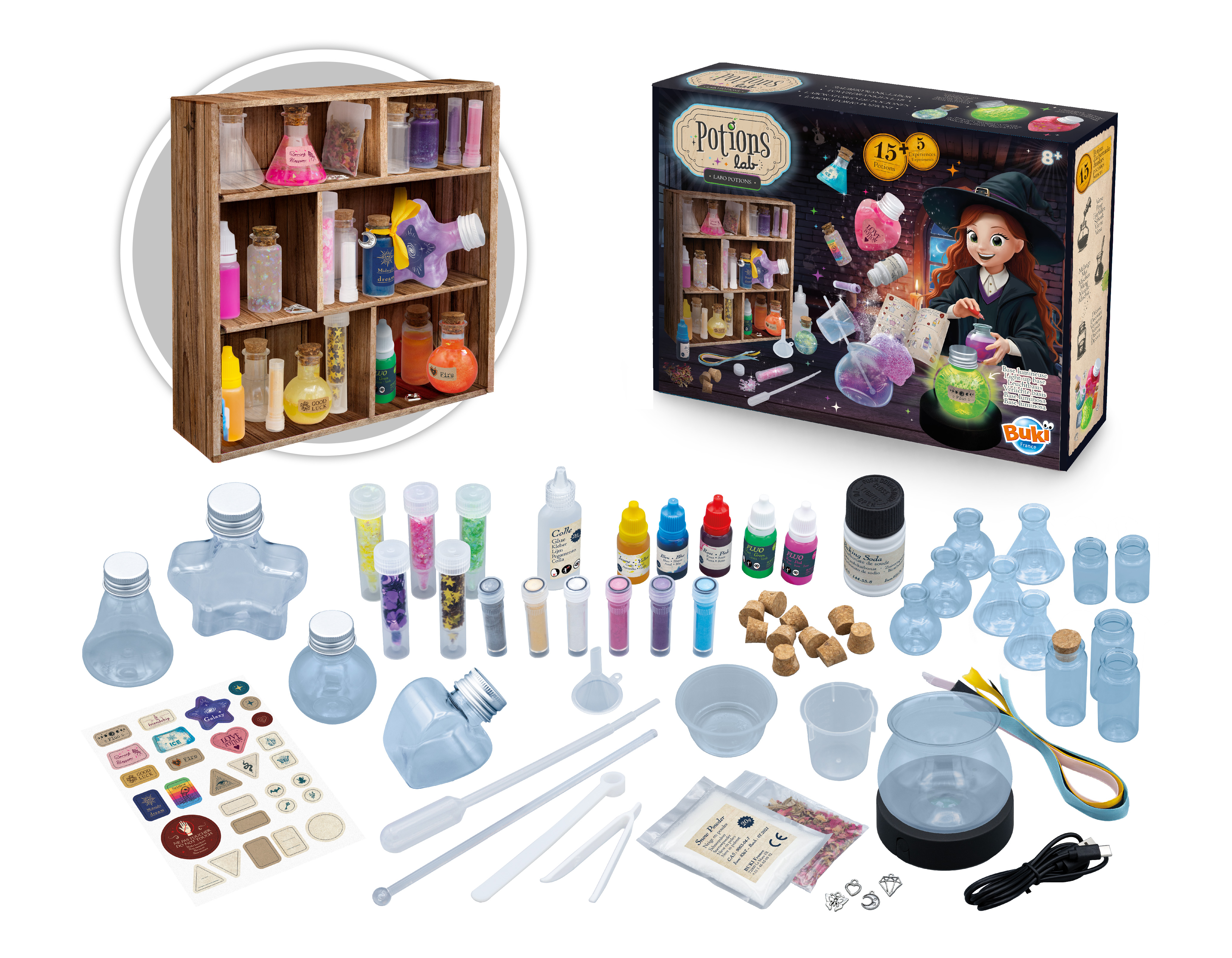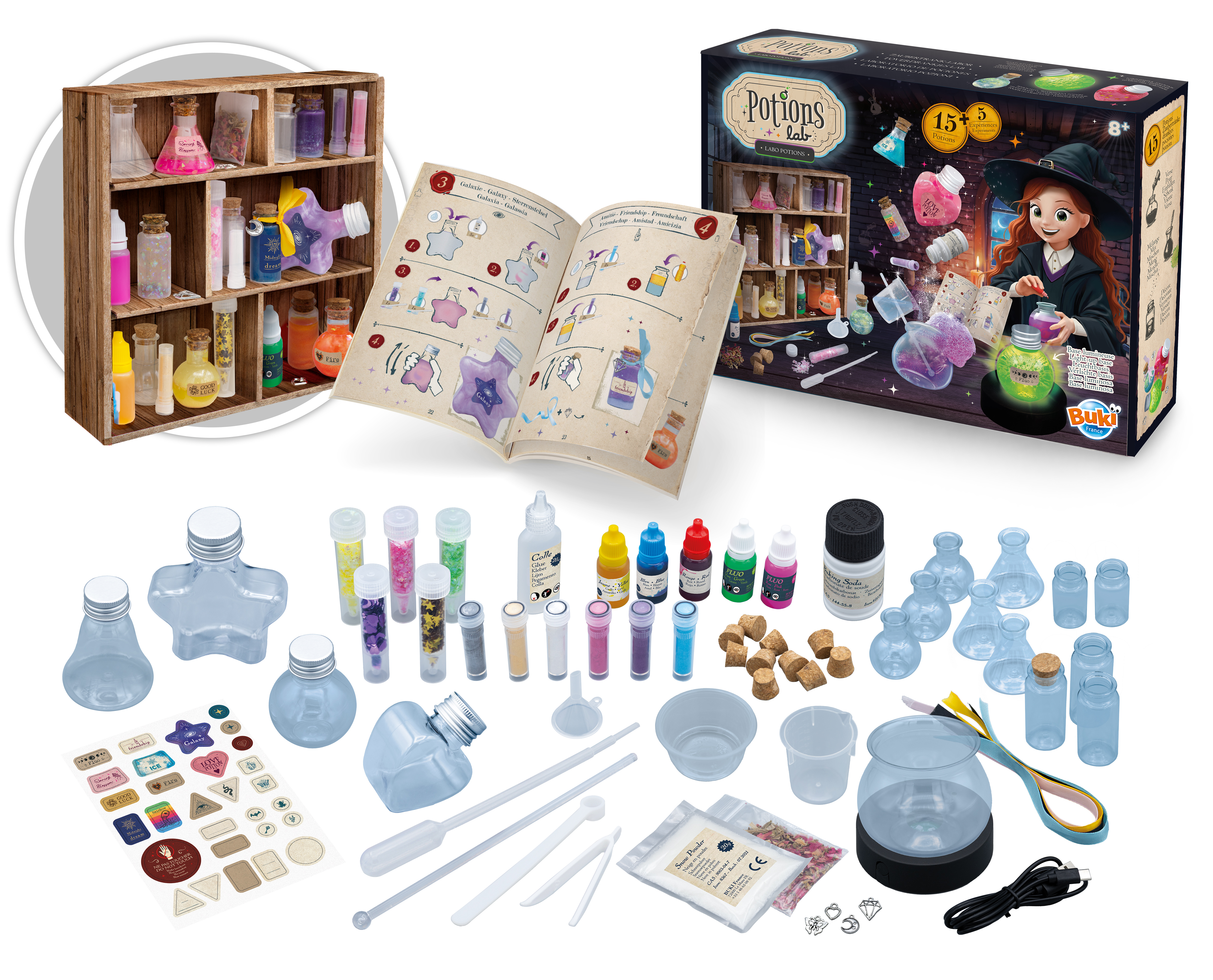 Magiczny zestaw do tworzenia eliksirów mocy! Za pomocą dołączonych materiałów oraz podstawowych składników spożywczych można stworzyć aż 15 różnokolorowych substancji.